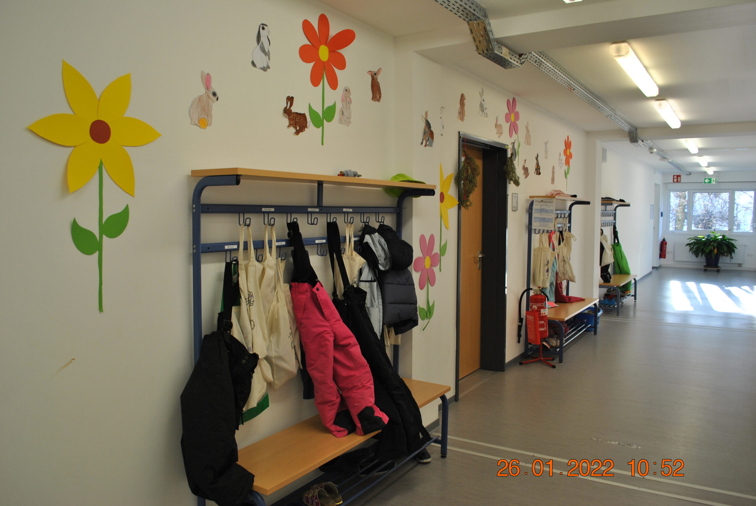 Da sich der Hort momentan in den Containern in der Bahnhofstraße 9-11 befindet, werden die Erstklässler bis zu den Herbstferien vom Pädagogischen Personal abgeholt und in den Hort begleitet.