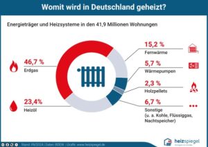 Der Großteil der Wärmeversorgung deutscher Haushalte (ca. 70%) basiert noch auf fossilen Brennstoffen (Heizöl, Erdgas).[1] Gleichzeitig sind rund ein Drittel der Heizungen in deutschen Haushalten älter als 20 Jahre (häufig Öl und Erdgas).[2]